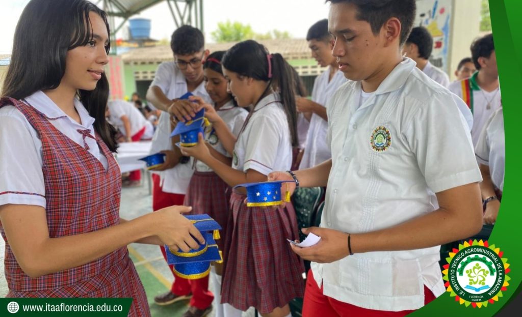 Los grados undécimo y décimo protagonizaron la entrega y recepción de los símbolos institucionales, entre ellos la bandera, el escudo, el himno, el uniforme, el manual de convivencia, las llaves del colegio, el PEI, el deporte, los libros y el portafolio SENA. Este acto simbolizó la transferencia del liderazgo, los valores y la responsabilidad académica a los estudiantes que continuarán su formación en la institución.