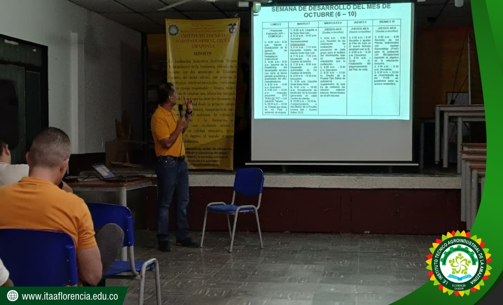El lunes 6 de octubre de 2025, en la sede Bella Vista, el Instituto Técnico Agroindustrial de la Amazonia (ITAA) dio inicio a la Semana de Desarrollo Institucional, conforme a la Circular Nº 043 emitida por la Rectoría, en cumplimiento del calendario académico vigente.